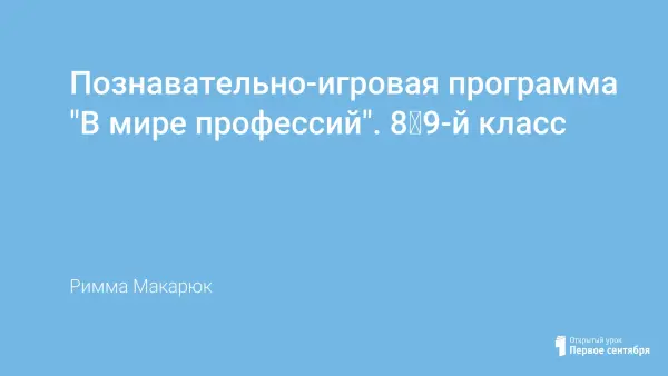 В ходе программы ведущая знакомит ребят с историей профессии и классификацией типов. Учащимся предлагается поучаствовать в нескольких творческих конкурсах, во время одного из них ребята рисуют эскиз заинтересовавшего их типа профессии и выступают с презентацией эскиза. По итогам всех конкурсов ведущая выбирает самых активных участников и вручает им грамоты.