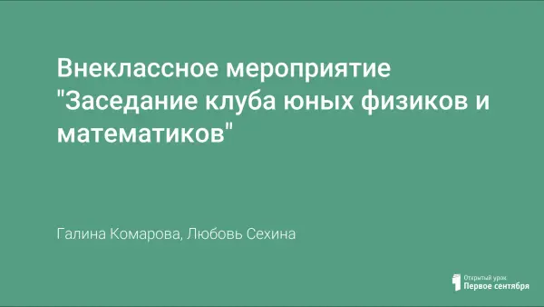 Внеклассное мероприятие "Заседание клуба юных физиков и математиков"