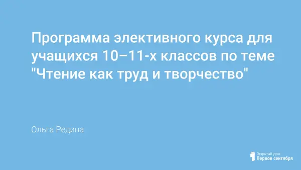 Элективный курс — приглашение старшеклассников к диалогу людей, прочитавших одну и ту же книгу и желающих её обсудить. Ведь классика обозначает культурную идентичность личности: как национальную, так и общечеловеческую.