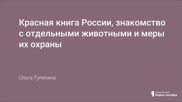 Красная книга России, знакомство с отдельными животными и меры их охраны