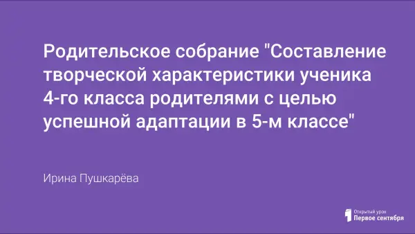 В ходе собрания определена цель, форма проведения. На собрании используется теоретический материал по адаптации, творческий проект с применением ИКТ.