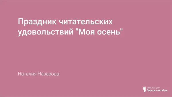 Урок литературы во 2-м классе по программе «Литературное чтение» Кудиной Г.Н., Новлянской З.Н., тема «Моя осень». Во время урока происходит демонстрация слайдов с осенними фотографиями; учащиеся читают наизусть стихи об осени под музыку. Цель занятия — предоставить возможность учащимся пережить эстетические эмоции.