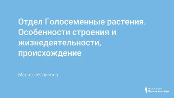 На уроке дается общая характеристика отдела “Голосеменные”, раскрывается особенность строения и жизнедеятельности растений отдела голосеменных.