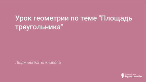 Урок построен таким образом, что ученики, работая в группах, самостоятельно выводят формулу для вычисления площади треугольника, используя при этом метод достраивания треугольника до прямоугольника или параллелограмма или метод перестраивания треугольника в прямоугольник или параллелограмм (способом разрезания).