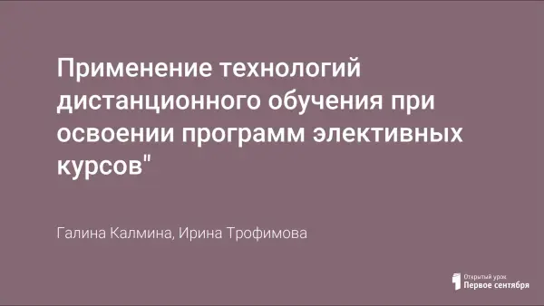 Применение технологий дистанционного обучения при освоении программ элективных курсов"