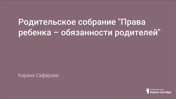 Родительское собрание проводится с целью познакомить родителей с основными правами ребенка, провозглашенными в Конвенции о правах ребенка; довести до родителей истину, что право и обязанность воспитания детей принадлежит им.