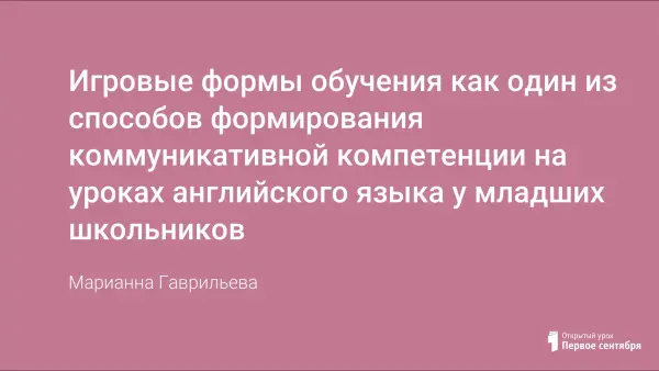 Цель работы состоит в поиске и отборе игр, игровых упражнений, создании презентационного материала сопровождающего уроки для организации эффективного процесса формирования коммуникативной компетенции на уроках английского языка в начальных классах. Использование игры на уроках английского языка помогает осуществлять целенаправленное формирование и развитие коммуникативной компетенции у учащихся начальных классов и, следовательно, способно ориентировать на достижение практического результата в овладении английским языком, а также на образование, воспитание и развитие личности школьника.