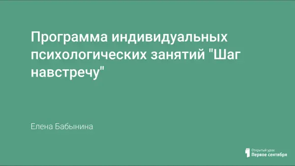 Программа индивидуальных психологических занятий "Шаг навстречу " разработана в соответствии со специфическими особенностями интеллектуальной и потребностно-мотивационных сфер ребенка. Формирование «умных эмоций» и коррекцию недостатков эмоциональной сферы необходимо рассматривать в качестве одной из наиболее важных, задач воспитания, развития ребенка.