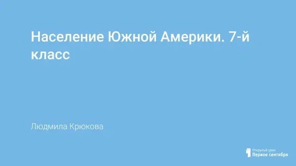 Урок открытия новых знаний. Учащимся на уроке необходимо выяснить, как заселялся материк Южная Америка, его расовый и этнический состав, расселение населения по материку. Структура построения урока нацелена на яркое и интересное его проведение.