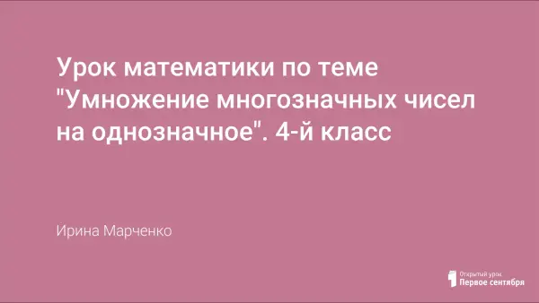 На основе многолетнего опыта работы автора по системе Л.В.Занкова, предложен урок математики в 4-м классе «Умножение многозначных чисел на однозначное число». Изучая математику, учащиеся знакомятся с достопримечательностями родного края. На уроке используются различные виды работ, что способствует всестороннему развитию ребенка.