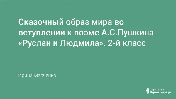 На основе многолетнего опыта работы автора по системе Л.В.Занкова, предложен план урока чтения во 2-м классе «Сказочный образ мира во вступлении к поэме А.С.Пушкина «Руслан и Людмила». На уроках чтения учащиеся знакомятся с музыкальными, художественными произведениями. На уроке используются различные виды работ, что способствует всестороннему развитию ребенка.