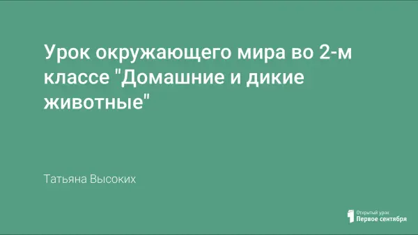Урок окружающего мира во 2-м классе по учебнику А.А. Плешакова. В ходе урока учащиеся повторят группы животных и их существенные признаки, познакомятся с отличительными признаками домашних и диких животных. В уроке использован фильм из viki.rdf.ru (~2236Kb).
