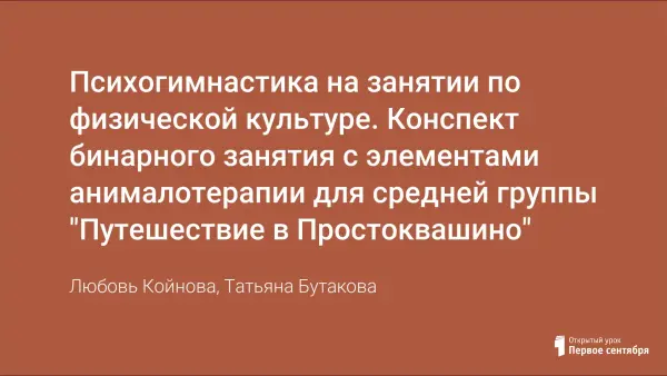 Психогимнастика на занятии по физической культуре. Конспект бинарного занятия с элементами анималотерапии для средней группы "Путешествие в Простоквашино"