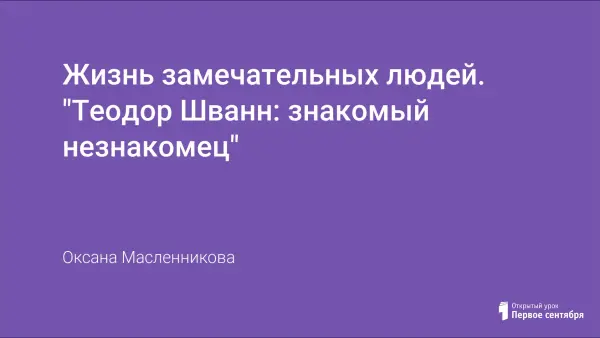 Биология – предмет, который невозможно изучить без знаний о людях, открывающих завесу тайны в мир научных открытий. В 2010 году исполняется 200 лет со дня рождения выдающегося биолога Теодора Шванна. Цель данного занятия – изучить вклад этого выдающегося человека в развитие биологической науки.