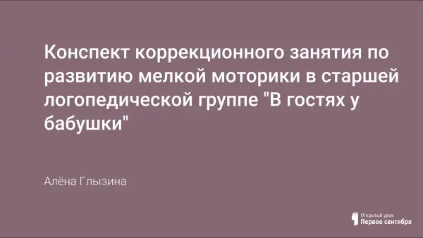 Конспект коррекционного занятия по развитию мелкой моторики в старшей логопедической группе "В гостях у бабушки"
