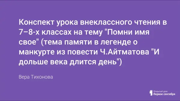 "Буранный полустанок" Чингиза Айтматова – сложный, философский роман. Для учеников среднего звена вполне доступен отрывок из этого романа - легенда о манкурте. Читая и обсуждая его, они еще раз вспомнят особенности легенды как литературного жанра, поучатся анализировать литературное произведение, определять своеобразие художественных образов.