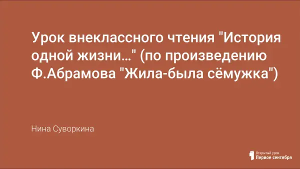 На уроке внеклассного чтения "История одной жизни..." учащиеся знакомятся с творчеством северного писателя. Содержание урока направлено на развитие вдумчивого чтения, развитие речи учащихся, умения рассуждать; способствует развитию интереса к творчеству Ф.Абрамова.