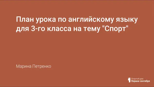 План урока по английскому языку для 3-го класса. Урок обобщающего повторения, систематизации знаний по теме «Спорт». Прилагается презентация, выполненная в программе Macromedia Flash.
