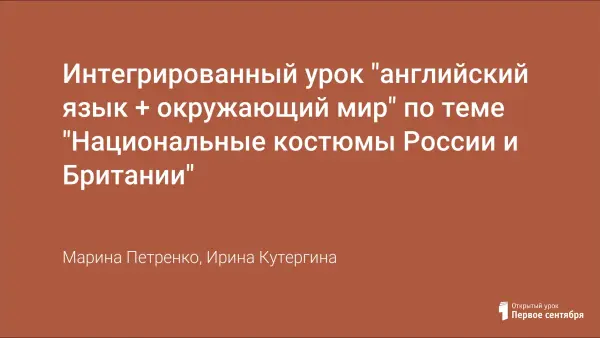 На интегрированном уроке учащиеся знакомятся с историей русского костюма, элементами костюма страны изучаемого языка и закрепляют знания о быте и культуре наших предков.