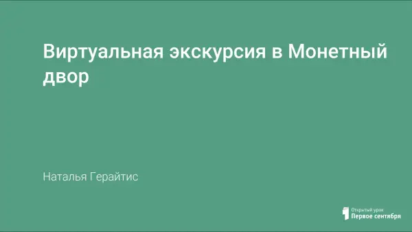 Целью виртуальной экскурсии является ознакомление с историей национальной валюты России. Во время внеклассного мероприятия ребята вспоминают, какими были первые деньги, как они изменялись и что с ними происходило впоследствии, знакомятся с историей Монетного двора.