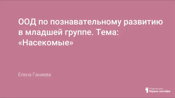 Цель занятия: создание условий для формирования элементарных представлений о насекомых.