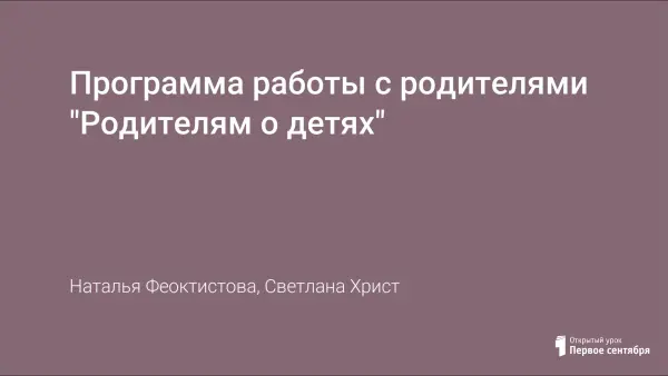 Дошкольное детство один из самых важных этапов в жизни ребенка. Именно в этот период наиболее важным является влияние семьи на развитие личности ребенка, влияние существующей в ней системы внутрисемейных, а также детско-родительских отношений. Программа рассчитана на родителей детей дошкольного возраста.