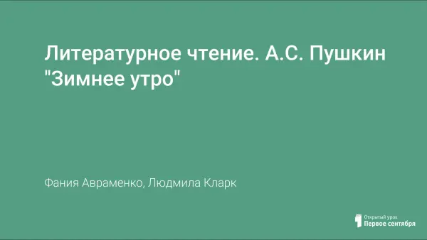 Литературное чтение. А.С. Пушкин "Зимнее утро"