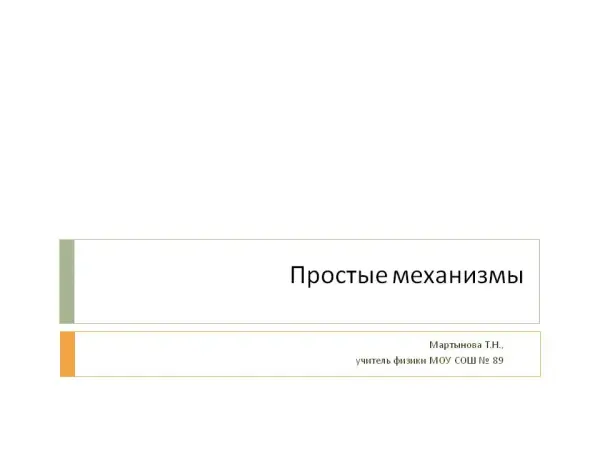 На уроке учащиеся закрепляют и расширяют знания о простых механизмах, КПД простых механизмов. Урок систематизирует знания учащихся по теме. Ученики отрабатывают навыки решения задач с научным калькулятором. Презентация может быть использована на протяжении изучения всего блока учебного материала «Простые механизмы».