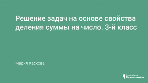 Цель урока: совершенствовать умение решать задачи на основе свойства деления суммы на число; развивать мышление упражнениями; совершенствовать вычислительные навыки.
