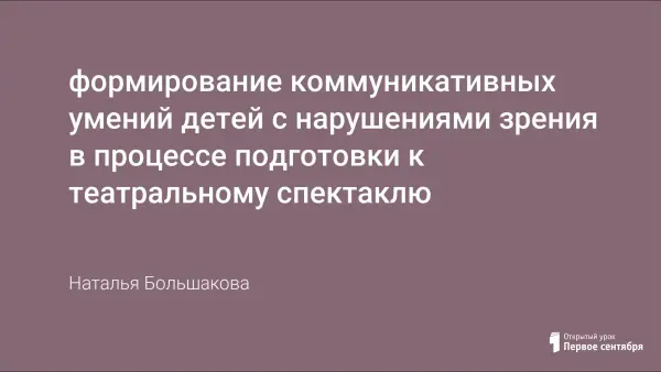 Деятельность, в том числе и театрализованная, в дошкольном детстве предполагает интегрированное использование всех средств коммуникации. Вербальный и невербальный, социальный и эмоциональный компоненты коммуникации тесно переплетаются с познавательной деятельностью, сосредоточенной у детей с вне ситуативно-личностной формой общения на социальных аспектах окружающего мира. Однако снижение познавательных возможностей вследствие зрительного дефекта обуславливает ограничение объема представлений об окружающем мире, и негативно отражается на механизме и динамике оперирования его образами в воображаемом плане.