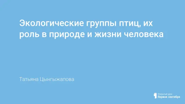 Урок раскрывает особенности строения и жизнедеятельности птиц разных экологических групп, продолжает формирование знаний об особенностях организации птиц как наиболее эволюционно развитых позвоночных, определяет роль птиц в природных сообществах. Развивает умение анализировать, устанавливать причинно-следственные связи, аргументировать свои суждения.
