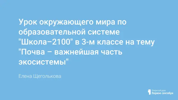 Урок знакомит учащихся с понятием «почва», её свойствами и роли в экосистеме. Развивает умение сравнивать, анализировать, ставить проблему, выдвигать гипотезу и находить её научное обоснование в практической деятельности и в различных источниках. Воспитывает умение работать в группе, формирует отношение к взаимосвязи в природе.