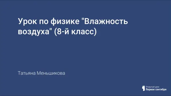 На занятии дается понятие влажности воздуха, способы ее измерения; знакомятся с характеристиками и значением влажности.