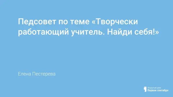 Данный педсовет проводится с целью вызвать интерес к процессу самопознания, формированию позитивного, ценностного отношения к собственной жизни. В ходе педсовета каждый участник осознает, что значит быть творческим учителем, определяет свои "плюсы" и "минусы". Педсовет проводится в форме педагогической мастерской.