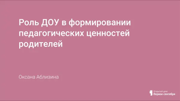Педагогические ценности родителей развиваются в рамках их педагогической культуры, в традициях семейного воспитания, во взаимодействии с другими воспитательными институтами. Взаимодействие педагогов ДОУ и родителей выступает одним из основных условий повышения педагогической культуры родителей.