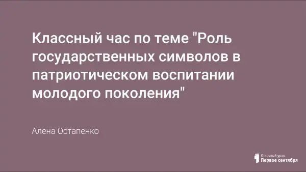 Предлагаю разработку классного часа о государственных символах в начальном и среднем звене.