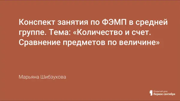 Цель занятия: закреплять умение считать в пределах 5 и сравнить предметы по параметрам величины.