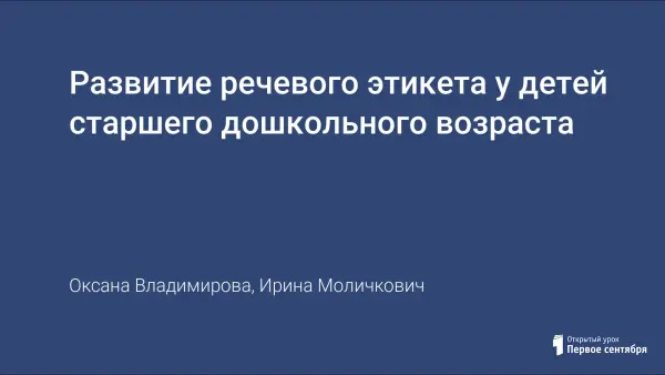 Развитие речевого этикета у детей старшего дошкольного возраста