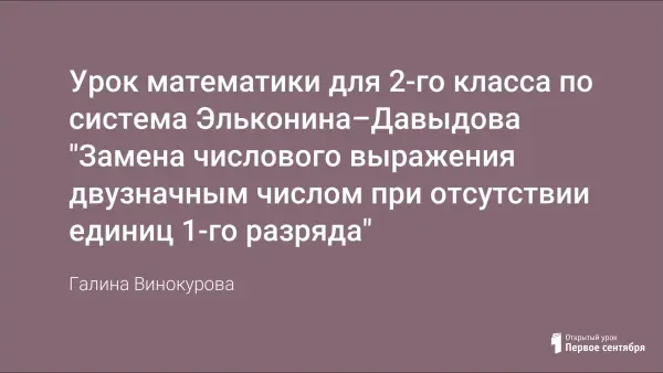 Урок математики для 2-го класса по система Эльконина–Давыдова "Замена числового выражения двузначным числом при отсутствии единиц 1-го разряда"