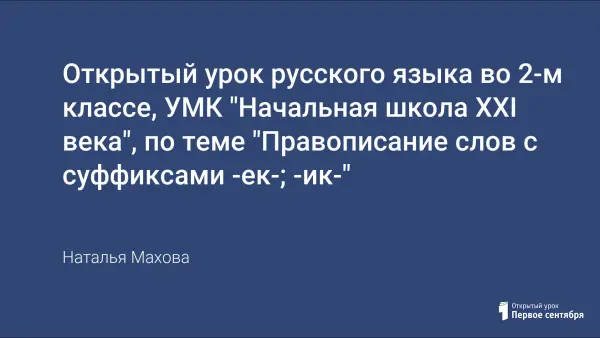 Данный урок рекомендуется учителям начальных классов, работающих по любому УМК, при ознакомлении с правописанием слов с суффиксами -ек-, -ик-. На уроке используется частично-поисковый, исследовательский, диалогический методы обучения.