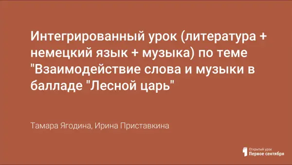 Интегрированный урок (литература + немецкий язык + музыка) по теме "Взаимодействие слова и музыки в балладе "Лесной царь"