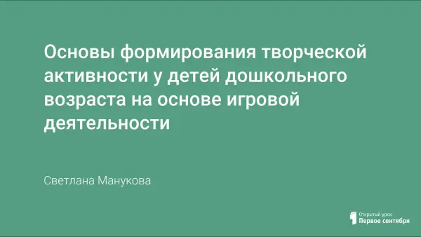 Проблема развития творческой активности личности ребенка относится к числу важнейших задач современной теории и практики дошкольного воспитания. Развитие творческой активности дошкольников проходит одновременно с формированием у ребенка целостной системы исторически сложившихся ценностей, когда закладываются основы человечности, доброты, мышления, интеллекта и т.п. Индивидуальные способности и дарования дошкольника наиболее ярко раскрываются в игровой деятельности. Это позволяет личности раскрыть себя с позиций активного творчества. От адекватного подбора содержания и применения педагогически выверенных методов и средств зависит уровень развития творческой активности ребенка.