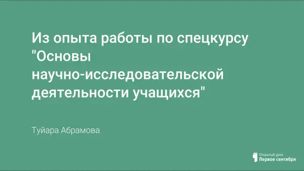 Цель данной работы – помочь учителям организовать научно-исследовательскую деятельность учащихся. Статья раскрывает некоторые особенности организации научно-исследовательской деятельности учащихся через спецкурс, программа которого представлена в статье. Особое внимание следует уделить комплексному подходу в организации НИР учащихся.