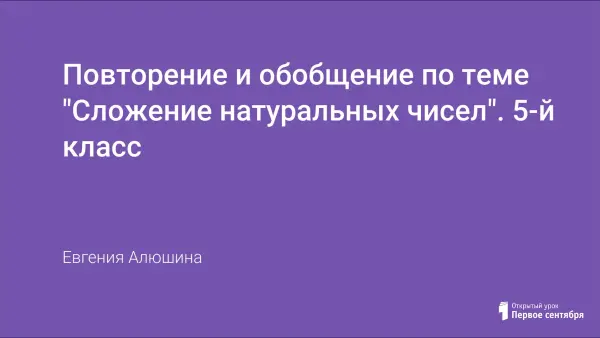 Цель урока: обобщить и систематизировать знания учащихся по теме «Сложение и вычитание натуральных чисел»; развивать память, математическую речь, логическое мышление учащихся; воспитывать интерес к предмету, математическую культуру, самостоятельность учащихся при решении задач.