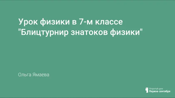 Урок физики в 7-м классе "Блицтурнир знатоков физики"