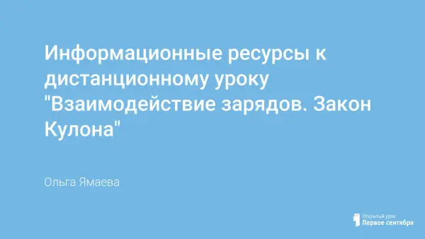 Информационные ресурсы к дистанционному уроку "Взаимодействие зарядов. Закон Кулона"