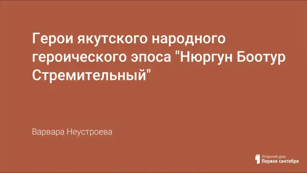 Данная работа рекомендована учителям-словесникам в качестве методической разработки урока. Урок олонхо несет в себе огромный воспитательный заряд. От удивительного мира олонхо учащиеся вместе с героями олонхо «Нюргун Боотур Стремительный» приходят к мысли о торжестве в жизни красоты, духовности и истинности.