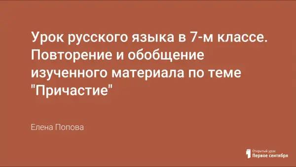 Урок повторения построен на концентрической основе с применением разных форм работы: как самостоятельной (индивидуальной), так и групповой, и коллективной. В ходе урока учитель опирается на обобщение и систематизацию знаний учащихся о причастии как части речи (с использованием фрагментов из произведений М.Горького).