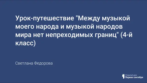На уроке происходит освоение истоков музыкальной культуры родного дома, края, музыкальной культуры других народов. Реализуется принцип - от освоения музыкальной культуры своего народа к освоению музыки совместно проживающих народов, на этой основе - к постижению ценностей мировой музыкальной культуры.