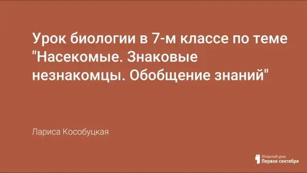 Цель урока – обобщить знания о строении насекомых и их значении в природе и жизни человека.